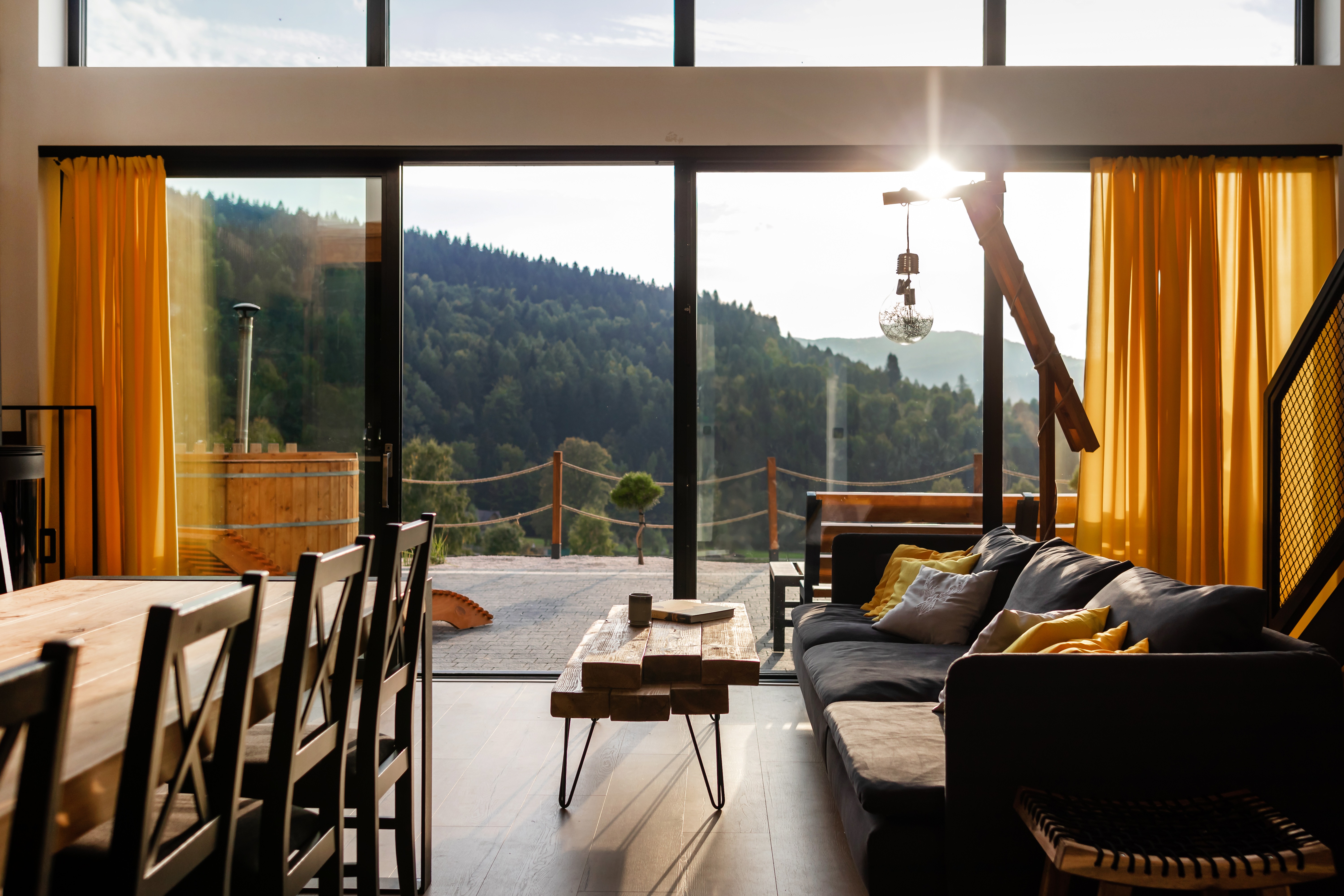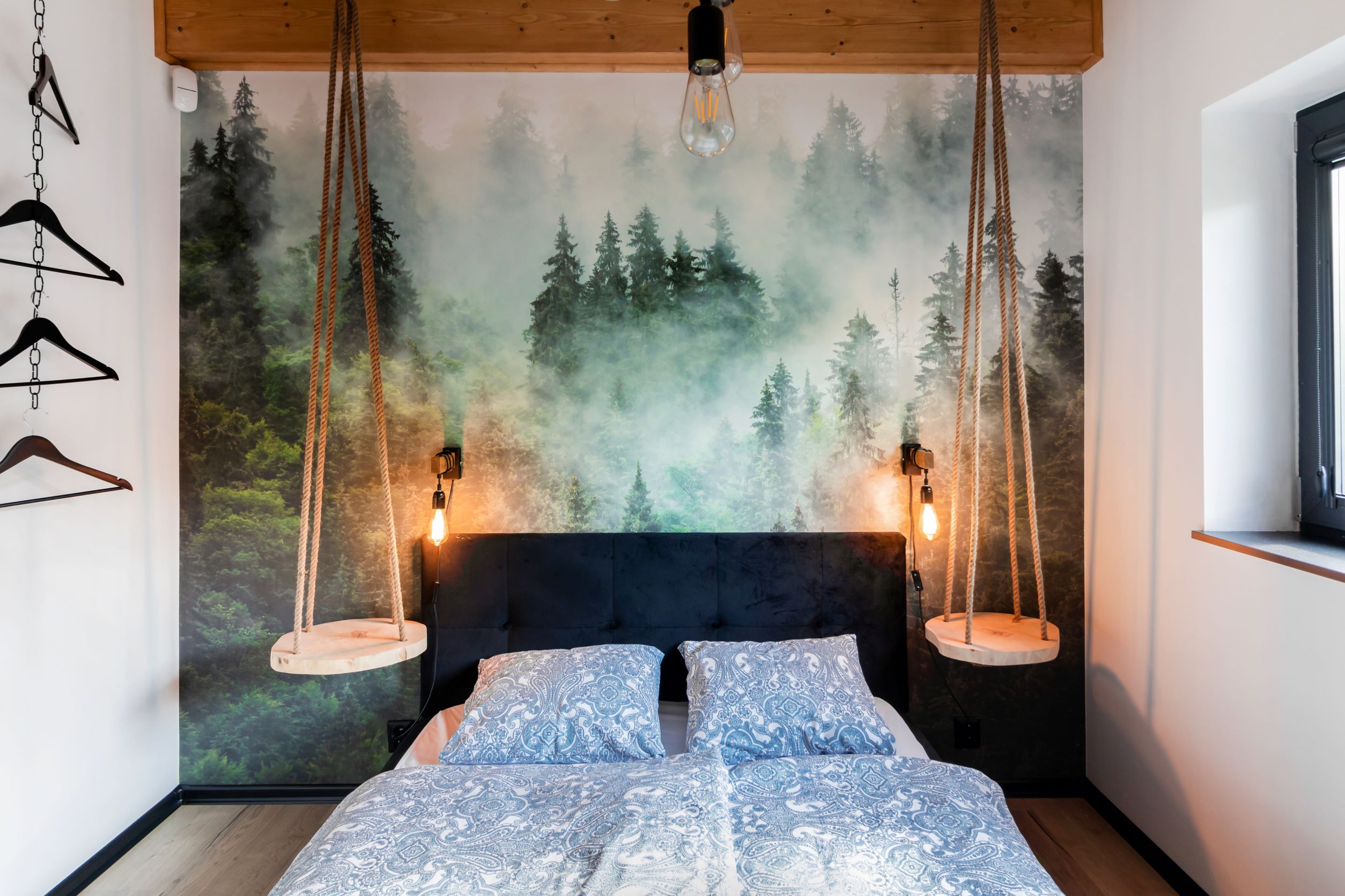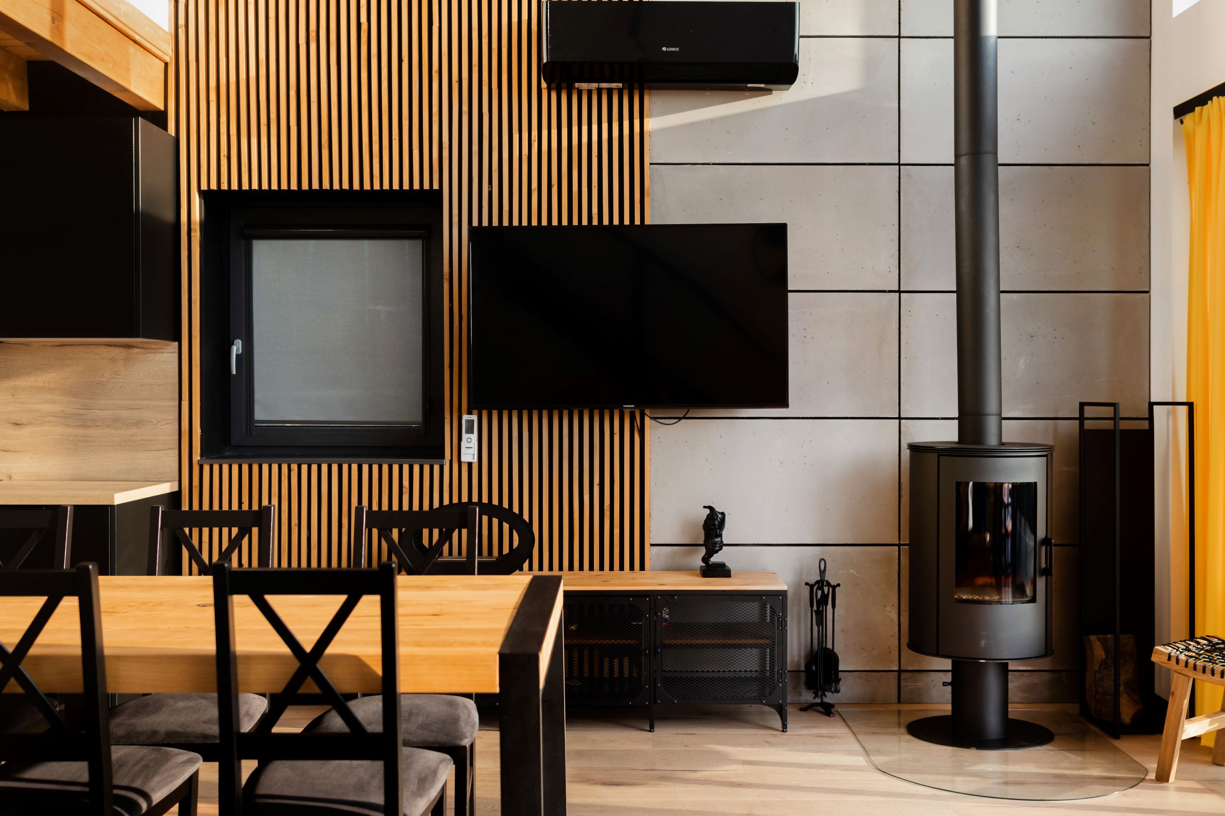 Dom Diabli Młyn to 130-metrowa willa na wyłączność, zaprojektowana z myślą o wygodzie i nieśpiesznym odpoczynku. Duże przeszklenia wpuszczają światło i kadrują panoramę gór, a taras i ogród stają się naturalnym przedłużeniem salonu. Wieczory umilają kominek i prywatna wanna z hydromasażem, a dźwiękoszczelne wnętrza oraz klimatyzacja dbają o komfort o każdej porze roku. W pełni wyposażona kuchnia (m.in. zmywarka, piekarnik, ekspres do kawy) zachęca do wspólnego gotowania, a grill i stół na zewnątrz sprzyjają spotkaniom pod chmurką. Na miejscu czekają udogodnienia dla rodzin — krzesełko dziecięce, gry planszowe, zabezpieczenia gniazdek — oraz multimedia z serwisami streamingowymi na wieczór filmowy. Willa łączy kameralność, domową swobodę i bliskość natury — idealna na weekend z przyjaciółmi, rodzinny wyjazd czy dłuższy reset w górach.